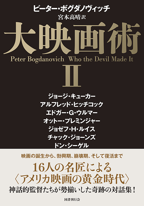 〈本書においては16人のさまざまな映画作家にインタビューが行なわれている。それら16名の経歴をあわせると映画史のほぼ全体をカバーする──19世紀末の映画の誕生から、勃興期、黄金期、下降期を経て、崩壊期(そして復活?)までという具合に。(……) それら長短、密度さまざまに異なる語りと、当人たちをスケッチした前書きから、私が(いかに短期間であれ)知り得た人物の肖像が立ち現れ、人物としての性格がおぼろげにでも読者に見て取れることを願いたい〉ピーター・ボグダノヴィッチ「はじめに」より
